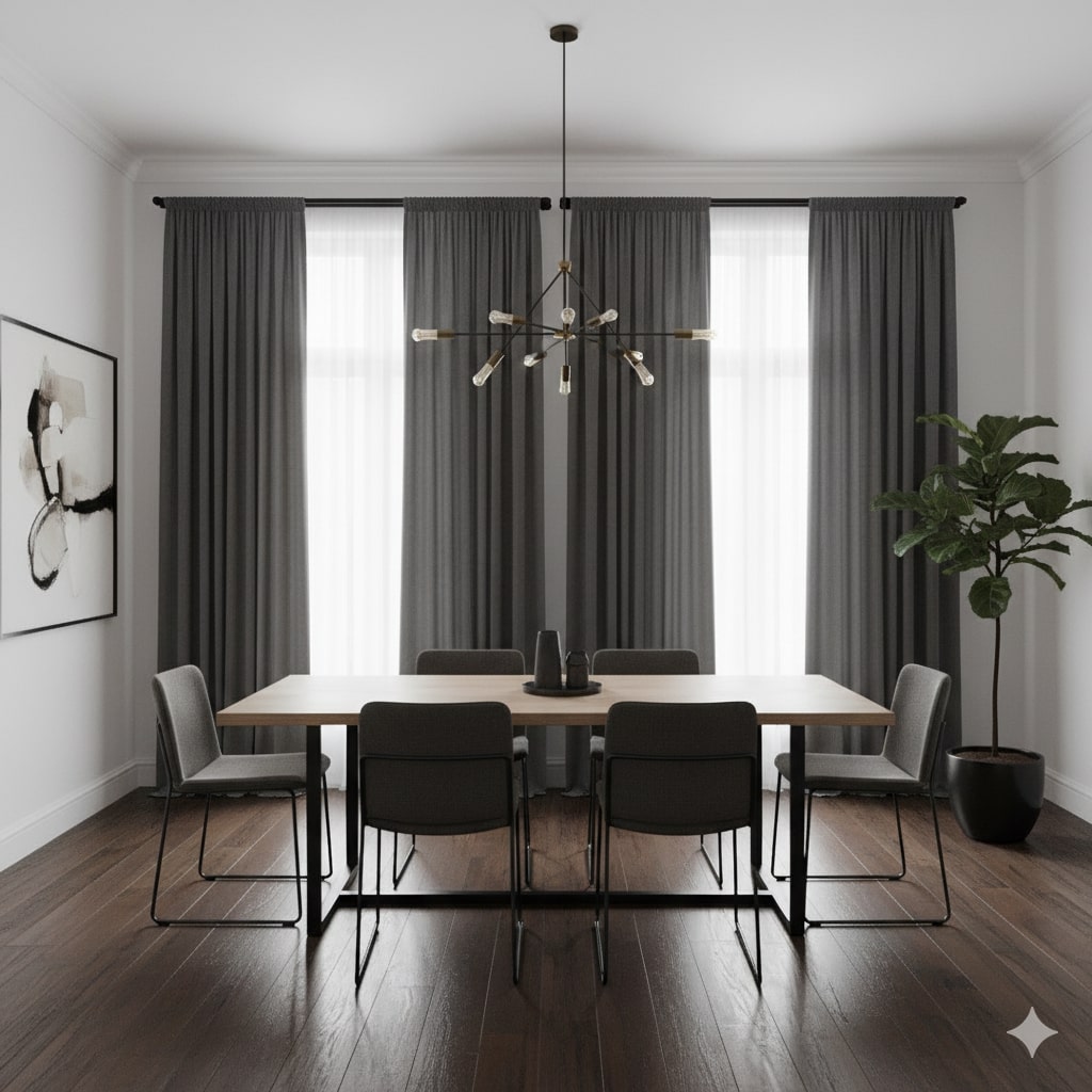 A: Absolutely. Curtainity’s dining drapes can be paired with smart or remote-controlled systems for effortless ambiance control.