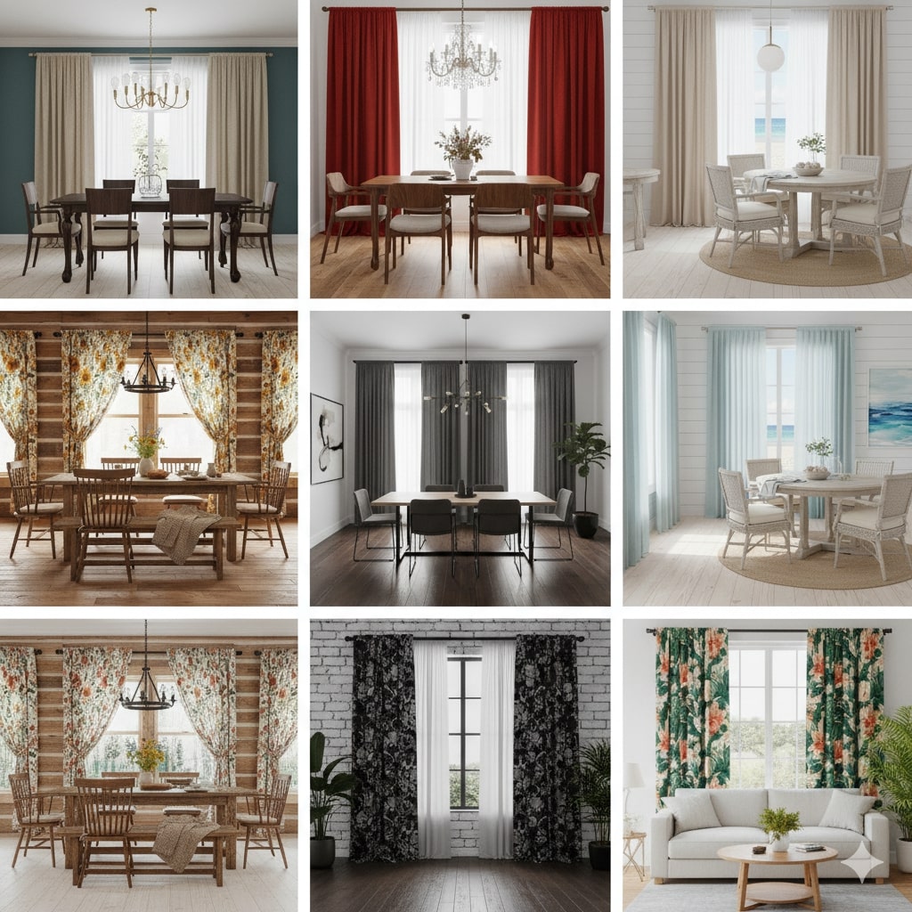 The right drapes shape your dining experience. Rich fabrics and soft folds create intimacy and warmth, while sheer materials let in soft daylight for bright, welcoming meals.