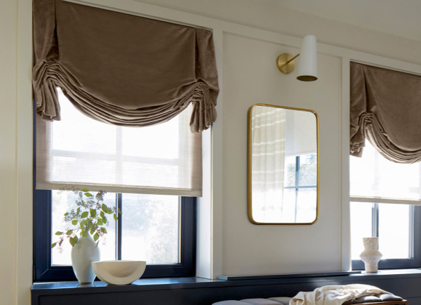 Roman shades offer a soft, elegant appearance while giving you full control over privacy, brightness, and insulation.
